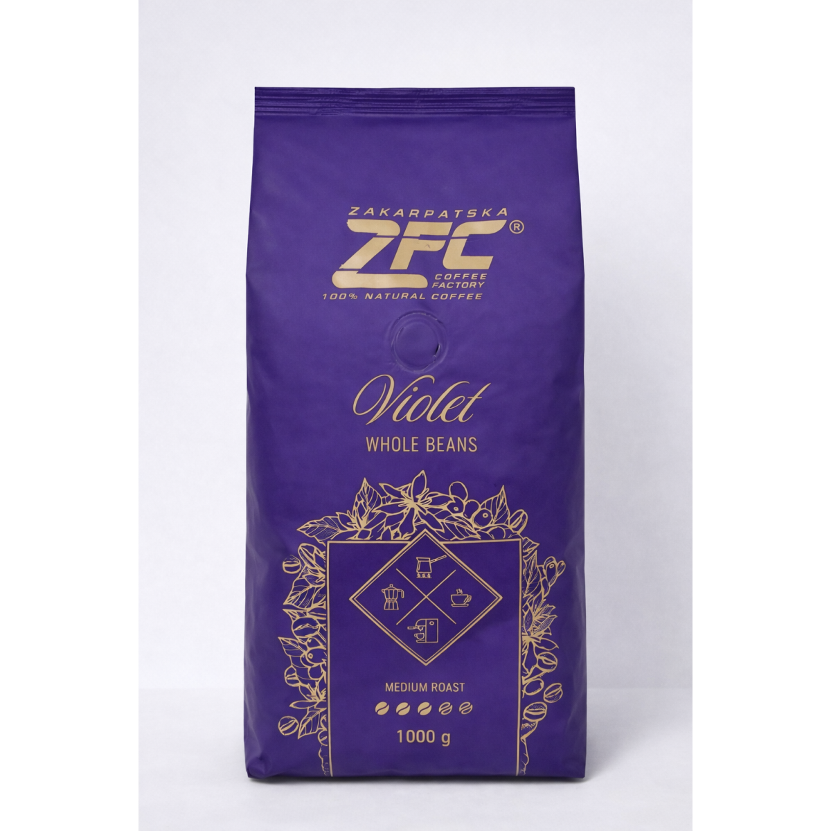 Кава в зернах ZFC Violet має в своєму складі 60% арабіки і 40% робусти. Більшість виробників створюють бленди, комбінуючи між собою ці два сорти кавових бобів. Закарпатська фабрика кави - не виняток. З високогірних плантацій Америки, Африки, Азії до нас регулярно надходять добірні зерна всіма улюбленої арабіки, а також робуста високої якості. Після обсмажування наші фахівці створюють різні купажі, фасують каву в зернах і відправляють в магазин.